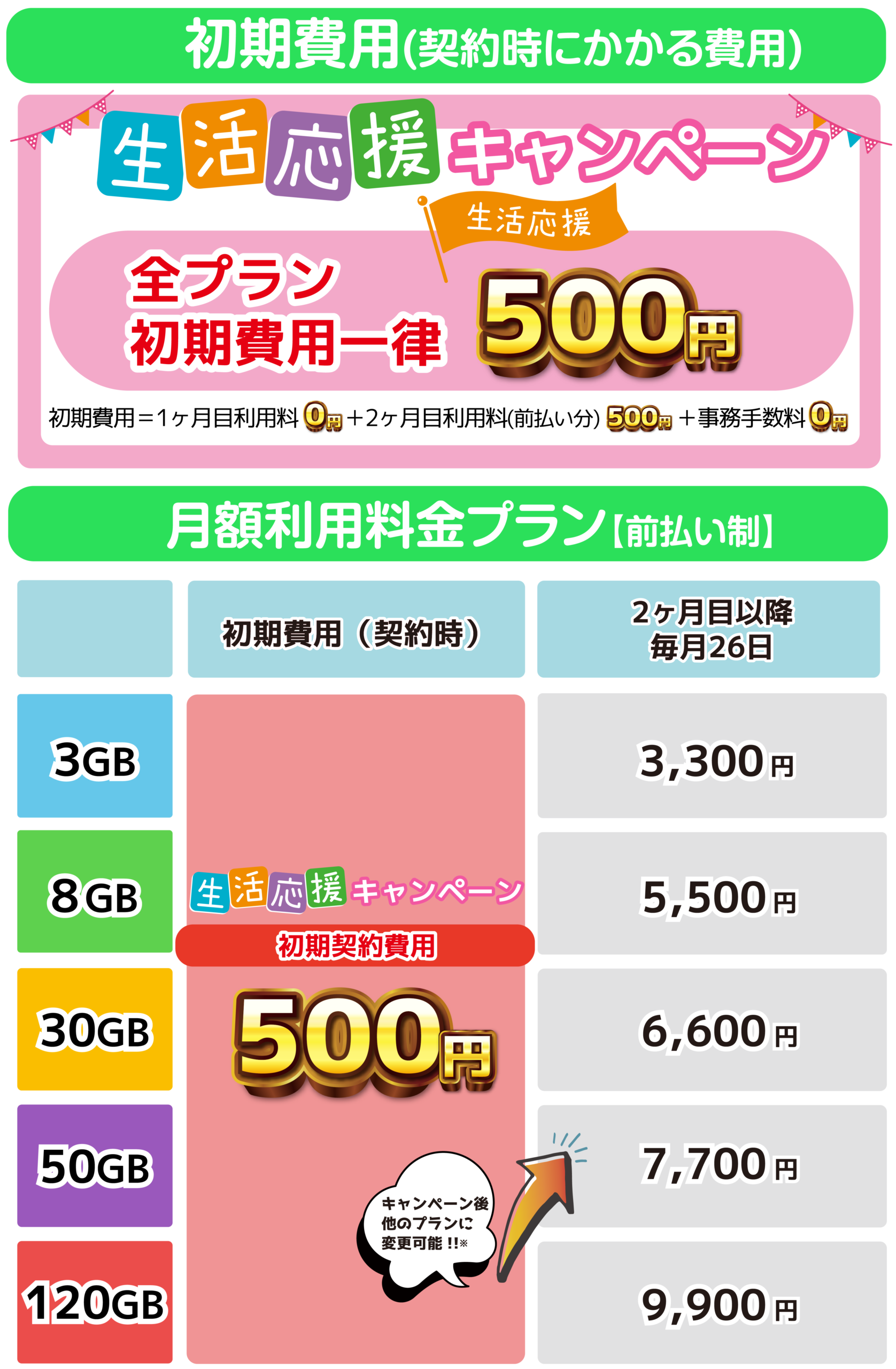 【SIMプラン初期費用】が全プラン500円の特別企画!!
